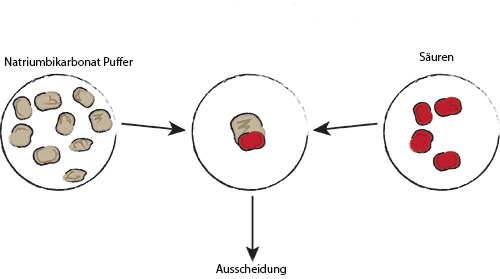 Natriumbikarbonat (NaHCO3) formt den wichtigsten basischen Puffer in unserem Blut. Er sorgt dafür, dass das Blut leicht alkalisch bleibt. (pH 7.365), wodurch saure Abfallstoffe neutralisiert werden. Natriumbikarbonat wird aufgrund der reinigenden Wirkung im Volksmund auch Natriumhydrogencarbonat genannt. Durch diese reinigende Wirkung werden Säuren entfernt.